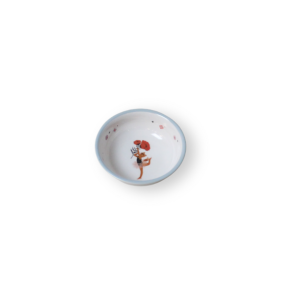 This white melamine bowl showcases a dancing fox, brightening up breakfasts or snacks. Lightweight and durable, it is ideal for everyday use.