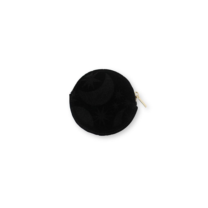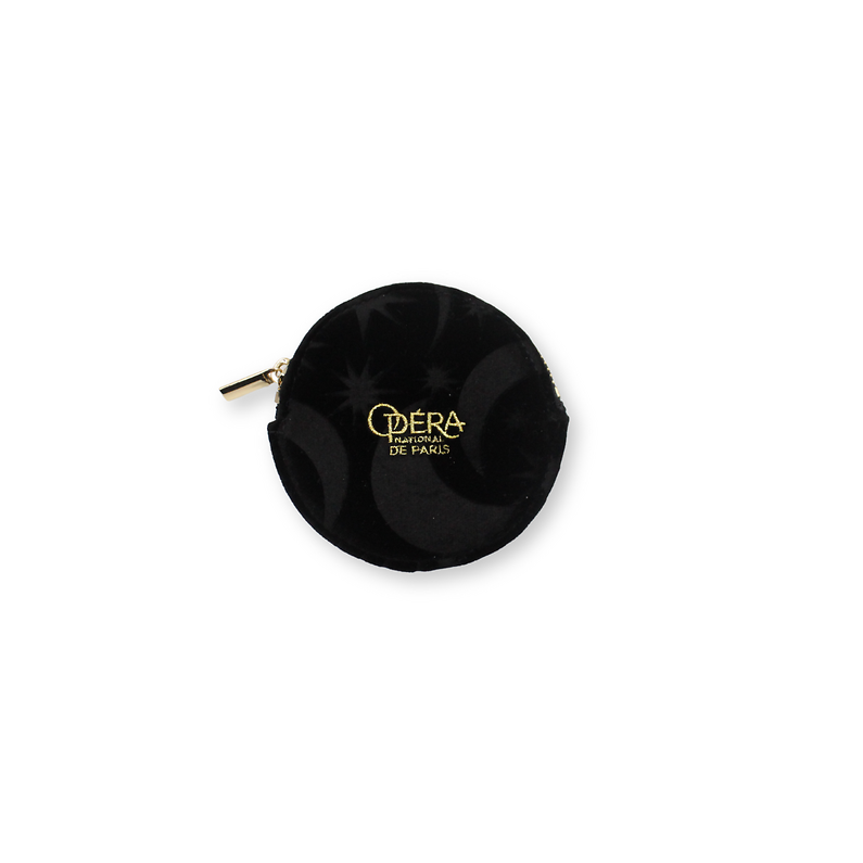 Add a touch of celestial elegance to your everyday life with this black and gold coin purse adorned with the Moon & Sun motif. Its soft velvet and refined design make it a chic and timeless accessory, ideal for complementing any outfit. Official Opera Product.